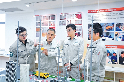 國網(wǎng)檢修公司員工在雙創(chuàng)基地開展一次設(shè)備研究。在最大限度激發(fā)內(nèi)部活力的同時(shí),公司還堅(jiān)持眼光向外,以開放合作的姿態(tài)匯聚更多科創(chuàng)力量。為加快形成產(chǎn)學(xué)研用一體的科技創(chuàng)新體系,公司與清華大學(xué)、西安交通大學(xué)等高校建立了聯(lián)合研究機(jī)構(gòu)。同時(shí),公司建成“國家級、公司級、各單位級”三級實(shí)驗(yàn)室體系,面向全社會(huì)開放100個(gè)實(shí)驗(yàn)室(包括19個(gè)國家級實(shí)驗(yàn)室),并鼓勵(lì)社會(huì)各界積極參與共建公司各級實(shí)驗(yàn)室。公司科技成果孵化轉(zhuǎn)化平臺(tái)也已建立。2020年,職工創(chuàng)新成果孵化轉(zhuǎn)化達(dá)200項(xiàng),公司直屬科研單位年度科技成果轉(zhuǎn)化收入達(dá)6.5億元,特高壓換流閥、智能配電終端、安全芯片等一批專利技術(shù)的轉(zhuǎn)化落地,有效提升了電網(wǎng)裝備技術(shù)水平。依托豐富的科技創(chuàng)新成果,公司形成了規(guī)劃設(shè)計(jì)、投資運(yùn)營、工程建設(shè)、裝備制造、技術(shù)標(biāo)準(zhǔn)一體化“走出去”的國際合作模式。截至目前,公司累計(jì)主導(dǎo)編制國際標(biāo)準(zhǔn)84項(xiàng),推動(dòng)515項(xiàng)中國標(biāo)準(zhǔn)在“一帶一路”沿線國家應(yīng)用,顯著提升了我國在國際電工領(lǐng)域的影響力和話語權(quán)。日益完善的科技創(chuàng)新體系和日趨成熟的成果轉(zhuǎn)化機(jī)制,培養(yǎng)了越來越多優(yōu)秀的科技創(chuàng)新人才。目前,公司共擁有國家級專家人才365名,兩院院士7名,國家有突出貢獻(xiàn)的中青年專家13名,百千萬人才工程國家級人選28名,中華技能大獎(jiǎng)獲得者5名。