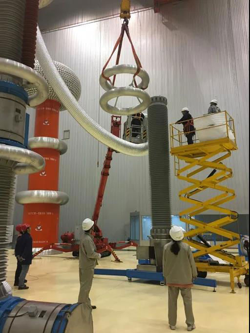 沖擊電壓攻關(guān)團隊開展跨頻域傳遞分壓器的特性試驗。